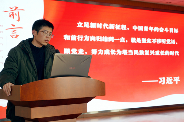 团总支书记龙紫扬围绕党的二十大精神、共青团第十九次全国代表大会精神、卫生健康现代化建设“九大行动”等内容为团员和青年代表上了一堂题为《红心向党 再建新功》的主题教育专题团课,号召全体团员和青年在院党委的领导下,立足本职岗位,踔厉奋发、勇毅前行,在医院发展中再建新功。