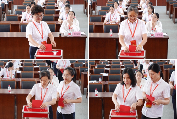 大会听取审议了《换届选举筹备工作报告》和《第七届妇委会工作报告》,依次表决通过新一届委员候选人名单(草案)、选举办法(草案)、监票人和计票人名单(草案),大会严格按选举办法规定差额选举产生医院新一届妇委会,由王超霞、沈爱红、陈丽娜、贺悦、黄佳5名同志组成。同时,举行妇委会第一次会议,选举贺悦为主任、王超霞为副主任,并确定了各委员分工。