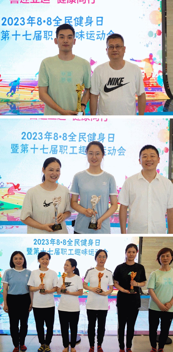 经过近2个小时的激烈角逐,在大家的欢呼声和助威声中,本届职工趣味运动胜利落下帷幕。院领导为获奖的工会小组进行颁奖。