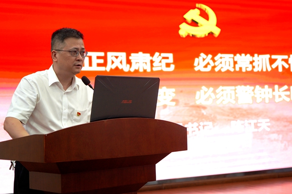 在深入开展学习贯彻习近平新时代中国特色社会主义思想主题教育之际,为进一步教育引导党员干部职工严格自我要求,强化自我约束,增强廉洁自律意识,争做遵纪守法的标杆,6月30日,院党委书记陈江天为党员干部职工上了一堂《正风肃纪必须常抓不懈 拒腐防变必须警钟长鸣》的专题廉政党课。