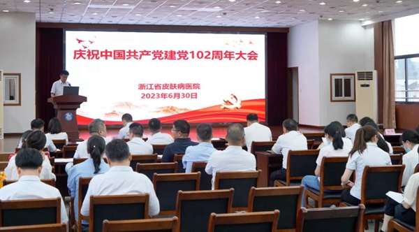 为庆祝中国共产党诞生102周年,引导党员干部坚定理想信念、加强党性教育、增强党性观念,进一步增强党组织的凝聚力和战斗力,激发党员的使命感和责任感,充分发挥党员的先锋模范作用,6月30日,省皮肤病医院召开庆祝中国共产党建党102周年大会。党委班子成员、全体党员和离退休党员代表参加会议。会议由党委副书记、副院长桑旭东主持。