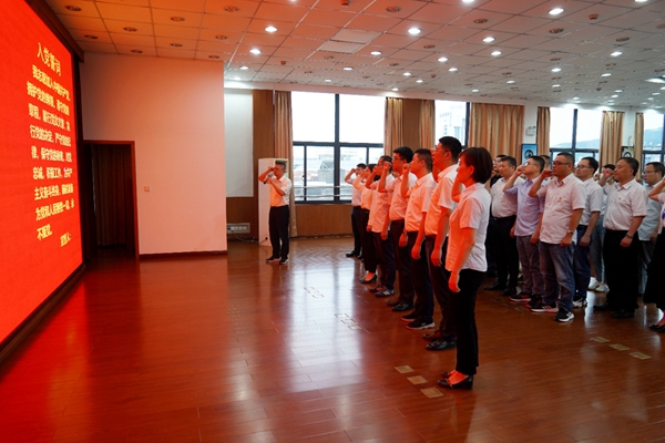 大会在庄严的国歌声中拉开帷幕,党委书记陈江天带领全体党员,面向党旗庄严宣誓,重温入党时对党和人民作出的庄严承诺,铿锵有力的声音宣示对党的坚定信念和为党的事业奋斗终身的决心,展现了全体党员的责任和担当。