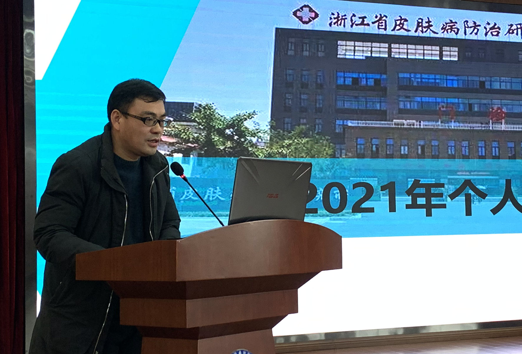 1月17日,浙江省皮肤病医院在六楼学术报告厅召开了2021年度中层干部述职暨年度考核会。会议严格落实疫情防控各项要求,院领导、全体中层干部参加,党委委员、副院长杨凯主持会议。