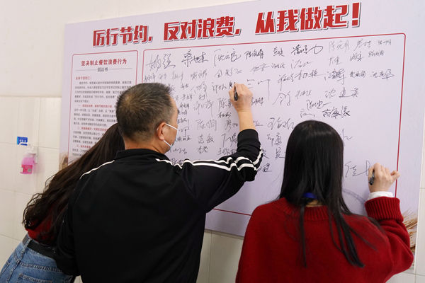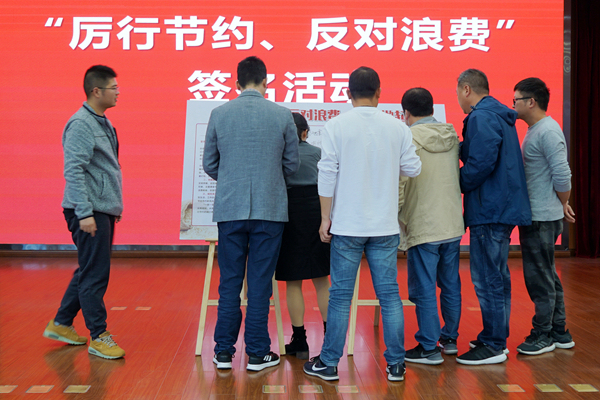 在签名活动中,党委书记姚强倡议各位中层干部以身作则,将“厉行节约、反对浪费”的精神传递给科室成员,传递给身边的人,做到率先垂范,并积极及时地督促提醒他人,自觉践行文明节俭的新风尚。相关责任科室要行动起来,从源头上、过程中多思考,做好精细化管理、监督激励等工作,让反对浪费真正成为内化于心、外化于行的好习惯。院党委领导班子成员、中层干部集体签字,全院职工积极响应。