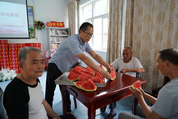 活动现场,慰问组一行为麻风休养员们送上西瓜、饮料、香皂、毛巾等夏季高温防暑物品。党委书记姚强叮嘱休养员们,天气炎热,要做好自身的防暑降温工作,保重身体,如需帮助可以与上柏住院部的结对党员及医护人员联系,他们将时时关心休养员的医疗、生活及心理情况。