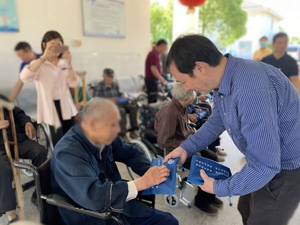 “谢谢你们,谢谢你们,我们每天进出都离不开轮椅,换了新的能用上很多年了。”医务人员搀扶着78岁的吴奶奶坐上新轮椅时,她不停念叨着感谢的话语。据悉,此次活动共发放了轮椅17辆,拐杖18副,尿素乳膏150瓶等。
