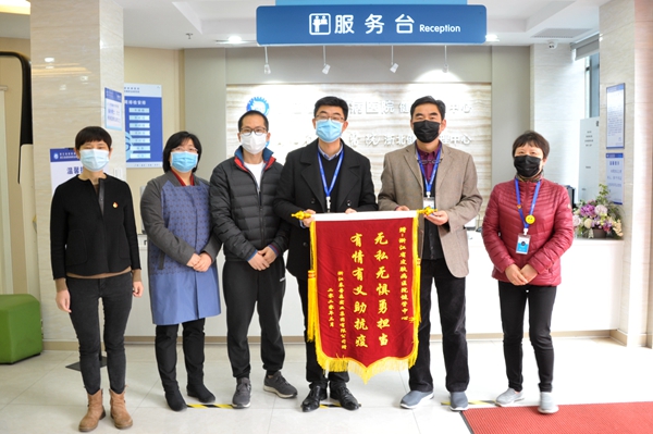 3月12日一早,浙江泰普森实业集团行政副总裁一行,专程前来我院,向健管中心、第三党支部送来两面锦旗,对医务人员“无私无惧勇担当,有情有义助抗疫”的助力行动和精神,表示衷心的感谢和钦佩。