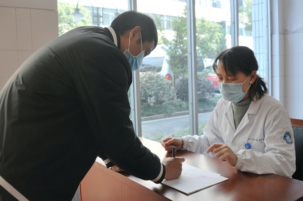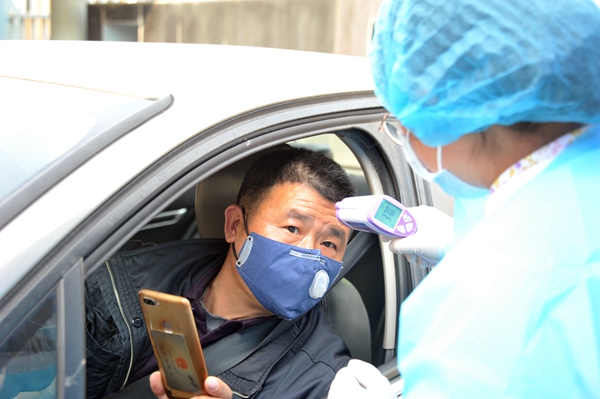 额温枪逐一测量体温,并查看健康码,额温偏高者耳温枪复测,对发热者及时进行引导