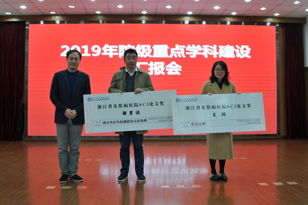 会上,院党委书记姚强首先为2019年度SCI论文奖获得者谢碧波、王涧颁奖,向他们表示祝贺。同时,鼓励医院职工继续努力,加强学科建设,提高学术水平,提升医院核心竞争力。