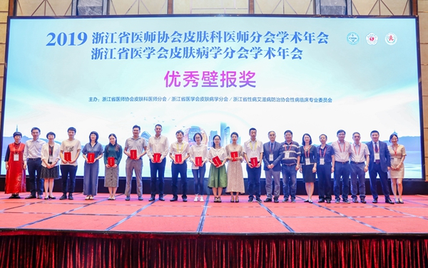 一分耕耘,一分收获。会上,我院皮肤科专家严丽英和于小兵担任病例报告专场及病理专场两场主持人,竺璐和谢碧波分别在病例专场和病理专场上台交流发言。我院选送的“皮肤科故事”荣获三等奖,选送的病例荣获省年会十大“优秀电子壁报”,并成功加入了“浙江省医学会银屑病诊治联盟”。此外,我院多名医师载誉而归,谢碧波被评为2019年度“浙江省皮肤科优秀医师”,沈利玲当选为省医学会皮肤病分会青年委员,王涧当选为银屑病学组委员,刘干红当选为真菌学组委员。