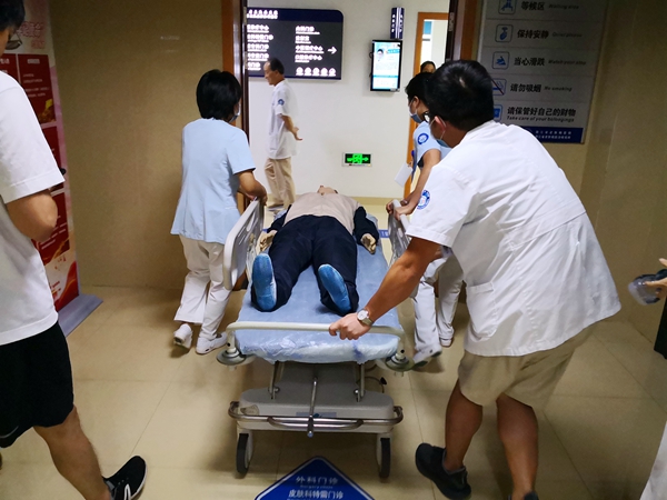 8月16日下午,我院医务科、门办、护理部在门诊3楼候诊室,模拟候诊患者突发休克,进行了一次联合急救演练。