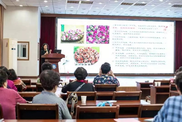 活动最后由我院中医妇科徐慧承主治医师讲解中医调理方面的知识,她从中医五行理论讲到夏季养生,从饮食、作息、药调等方面阐述人们在夏季应该遵从的生活规律,着重强调湿邪对脾胃的危害。例如,饮食应该“淡渗利湿”;作息应该适当“晚睡早起”,但应在23点前入睡;大汗淋漓时不应该立即洗澡,以免“去热留湿”;玫瑰花是妇女之友,可和血平肝,养胃宽胸散结……