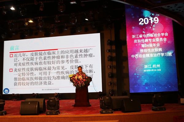 4月12-13日,省中西医结合委员会皮肤性病专业委员会第24次学术年会在杭州召开,省皮肤病医院常务副院长桑旭东带领皮肤学科团队参加了本次大会。我院积极组织投稿,论文投稿10篇,多人上台交流,作为该专业委员会副主任委员,于小兵主任作了《皮肤镜在炎症性皮肤病鉴别诊断中的作用》的大会演讲报告,并主持了一个阶段会议,充分展示了我院皮肤病学(皮肤影像方向)最新临床研究成果和学科风貌。