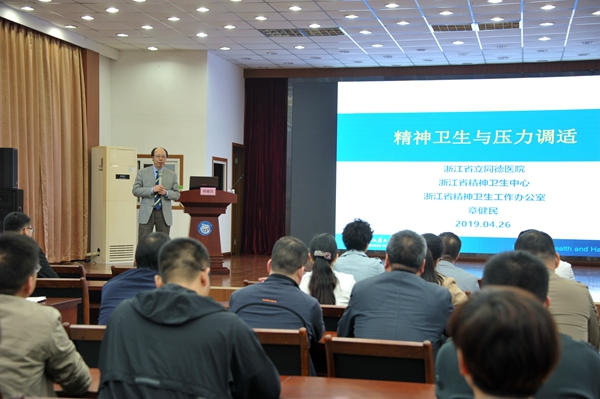 为提升职工身心健康,普及精神卫生和心理健康知识,4月26日,我院邀请浙江省立同德医院副院长章健民作题为《精神卫生与压力调适》专题讲座。院领导、中层干部、党群干部和小组长60余人聆听了此次讲座。