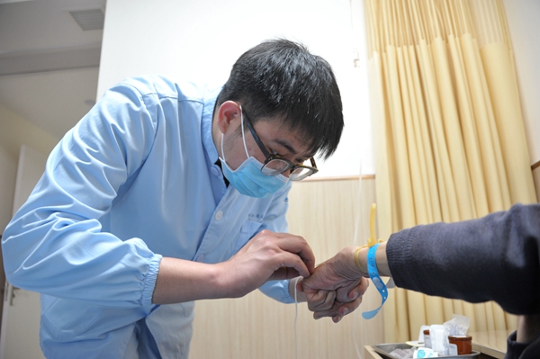25岁的阳光青年高敏漾是全院唯一一名男护士,也是团队的一员。新病房开放第一天,护士长按照责任制整体护理的要求,对病区护士进行了分组,小高所在的责任组里有一名慢性光化性皮炎反复8年近期再发的患者老李(化名)。入住前,小高详细了解了患者的诊疗病史和现症;入院后,他为患者做好各项护理、健康宣教和心理安慰工作。老李不由感叹,新病房干净舒适,医师查房耐心细致,连在院护理也做到了定人看护、随叫随到、真诚相待、专业安全、精益求精,是“六心”优质护理的典范。