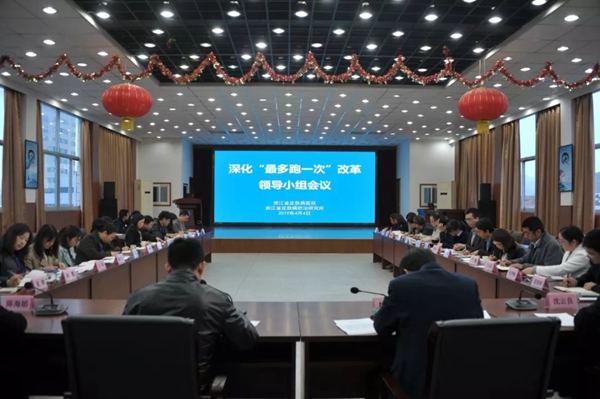 为进一步落实“最多跑一次”改革工作,4月4日下午,我院召开深化“最多跑一次”改革领导小组会议,院领导和各科室负责人参加,会议由常务副院长桑旭东主持。
