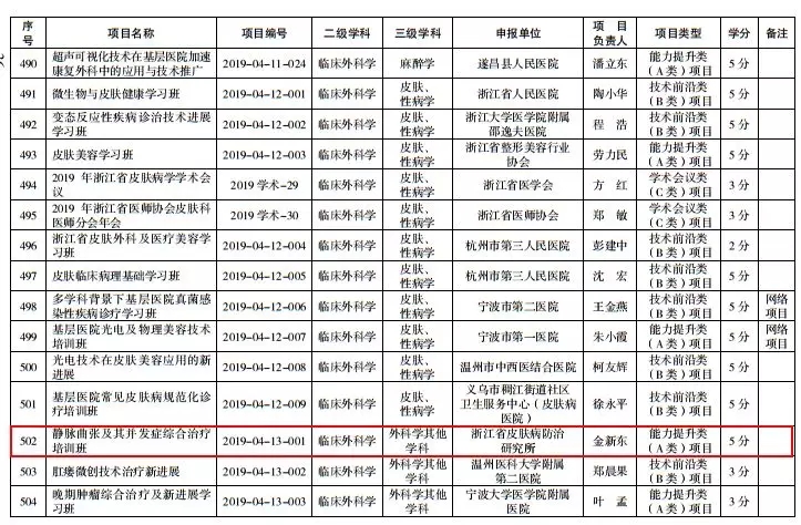 2019年3月8日,浙江省继续医学教育委员会公布了 “2019年浙江省省级继续医学教育项目”, 总计确定了各级医疗卫生单位、高等医学院校等主办单位的1178个省级立项。其中,我院皮肤外科的“蚯蚓腿”微创治疗继续教育项目喜获立项,充分显示了我院在治疗“蚯蚓腿”方面的不俗实力。