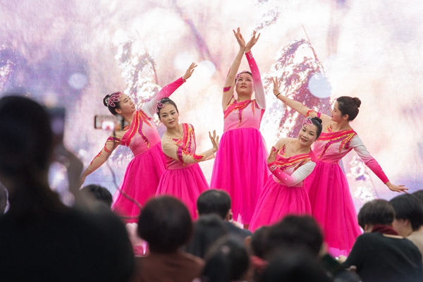 第八工会小组的舞蹈《樱花烂漫离人泪》用优美的舞姿诠释了相思离别苦。