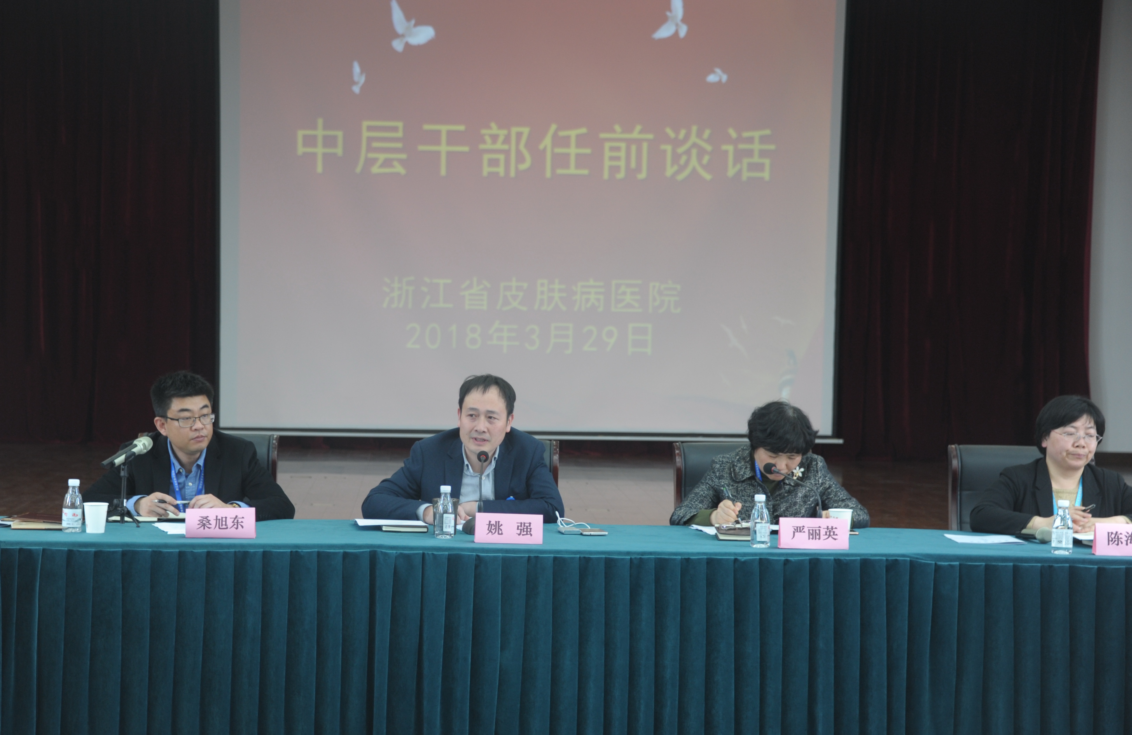 会上,桑旭东副院长首先宣读了《中共浙江省皮肤病防治研究所委员会关于郝霞等同志任职的通知》。门办副主任和皮肤一科主任代表新任中层干部作任职表态发言。