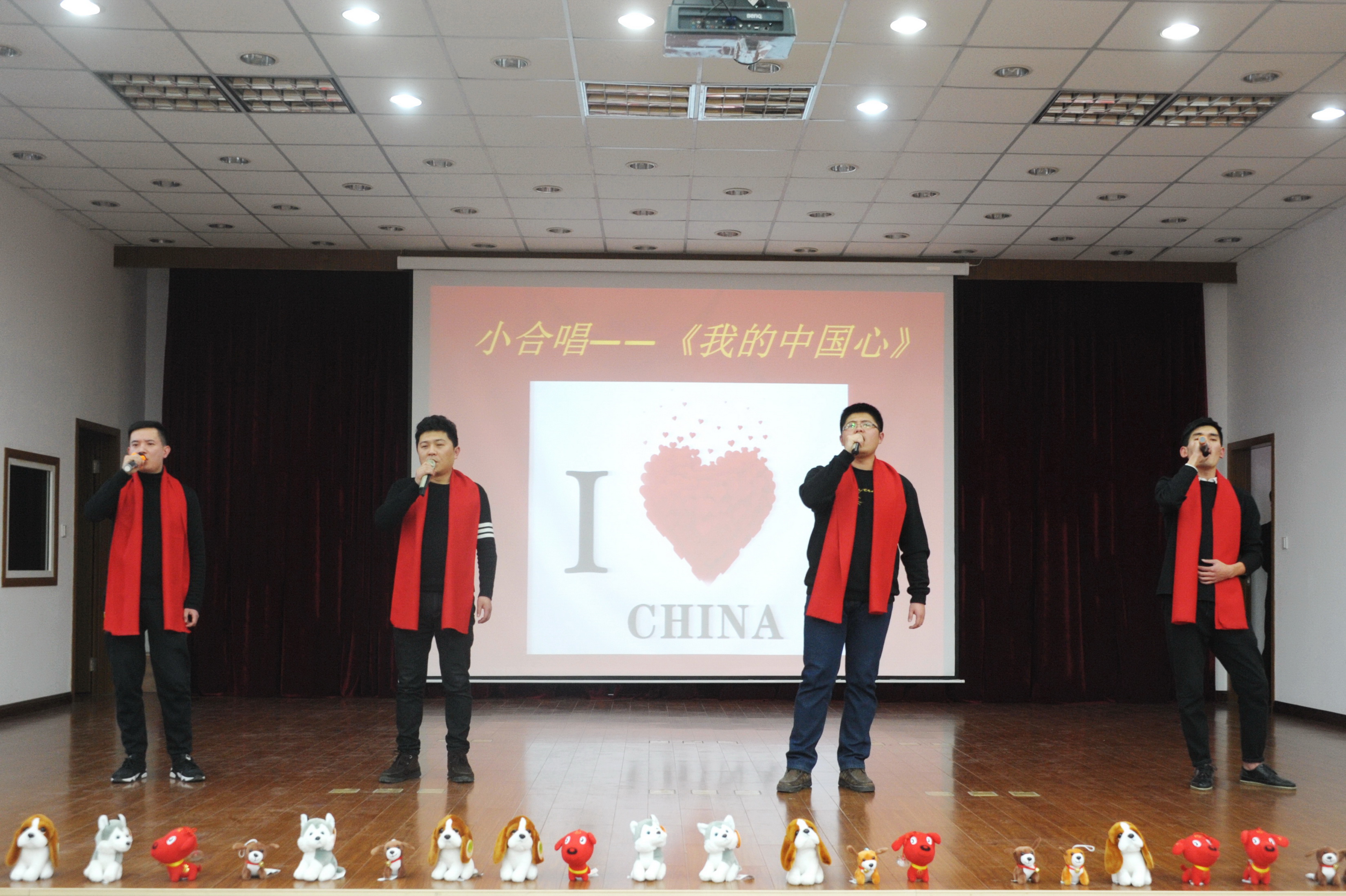 办公室的四个小伙一曲小合唱《我的中国心》,唱出了对祖国母亲的深深依恋之情。