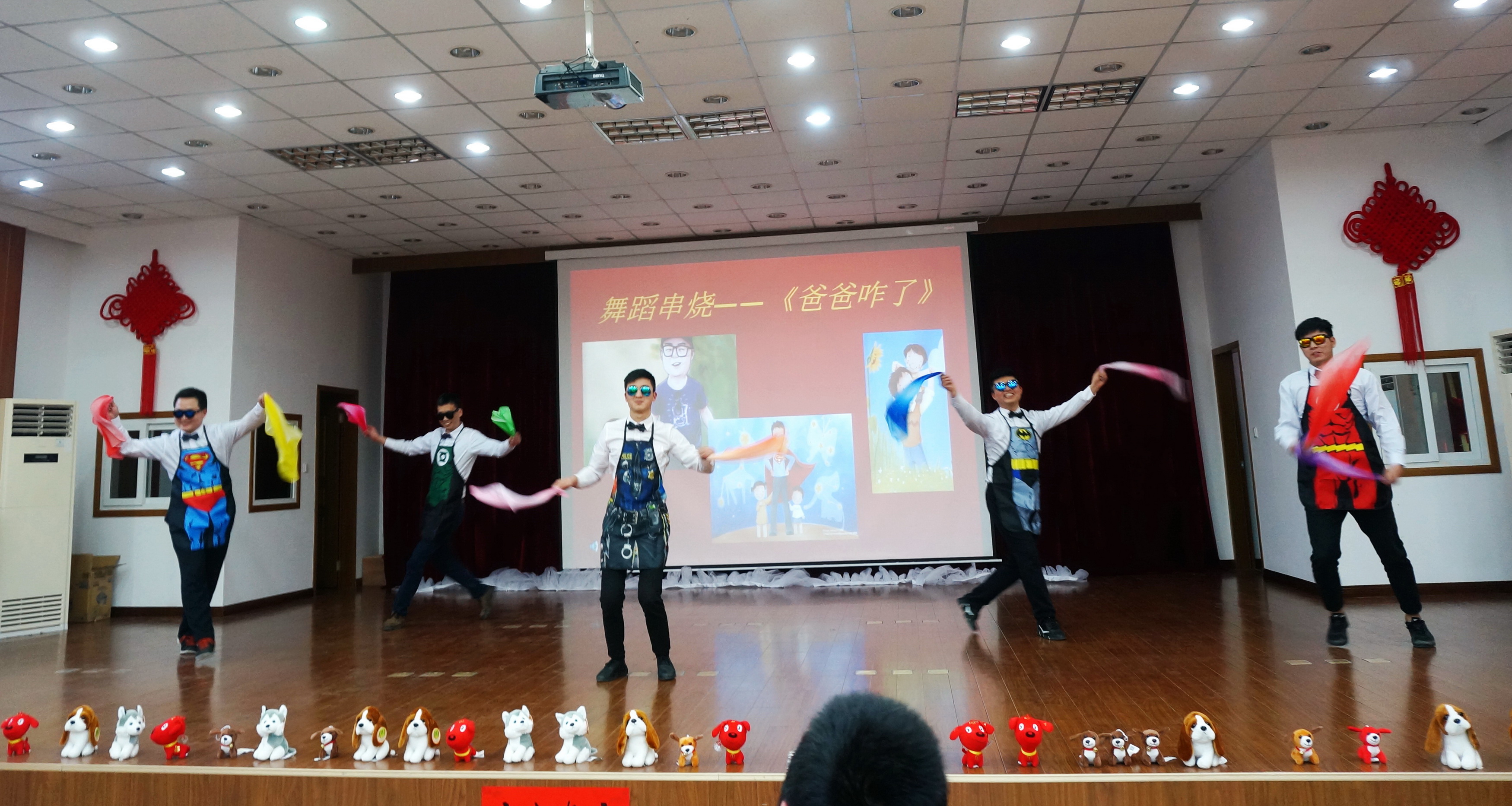 外科、护士组用风趣幽默的舞蹈串烧《爸爸咋了》表达了浓浓的父爱。五位长腿欧巴,用夸张的肢体语言,顿时赢得全场爆笑。
