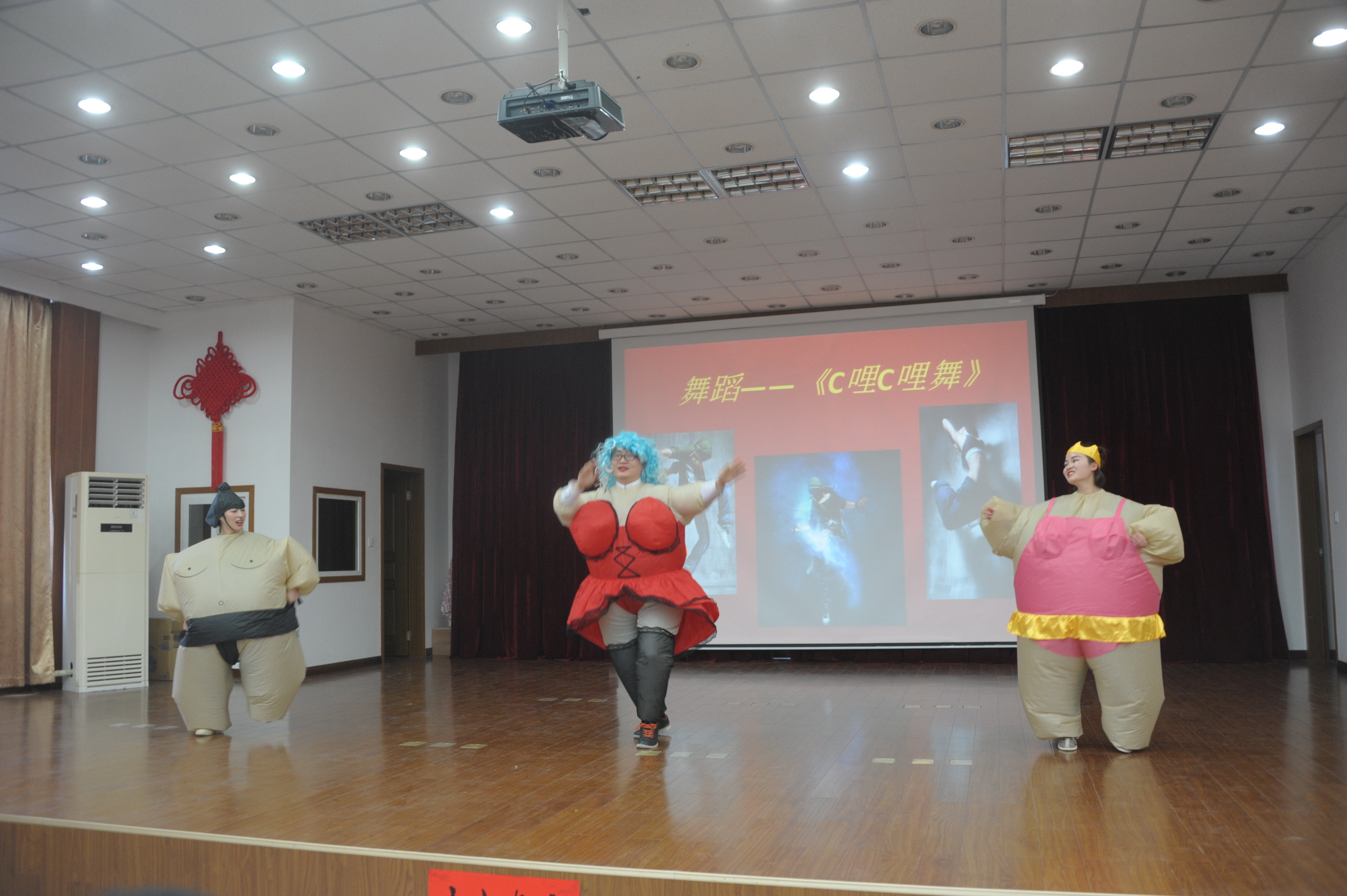 团总支带来的《C哩C哩舞》,三个可爱的肥娃娃欢快的起舞,充分展现了青年团员的朝气与风趣。