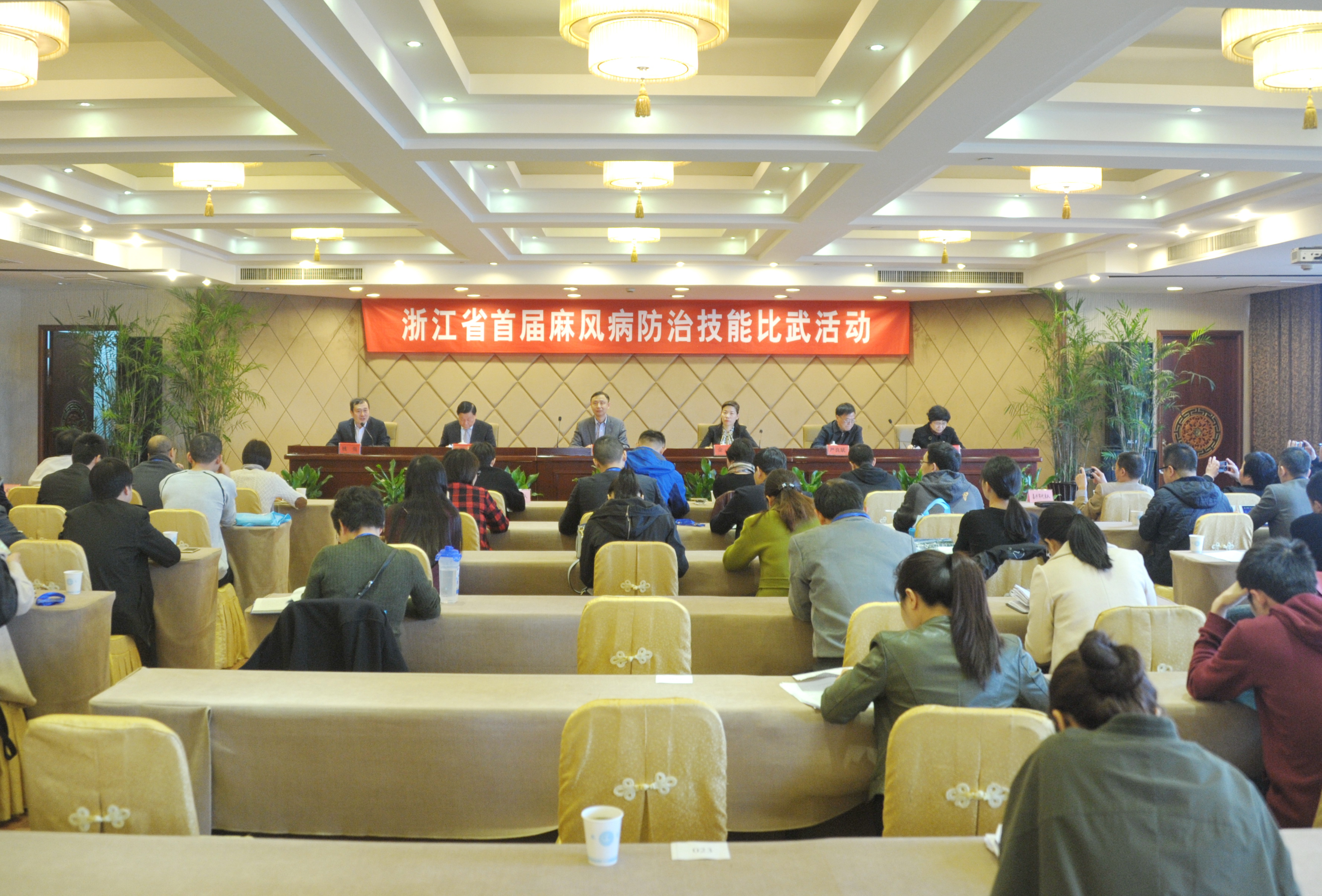 此次技能比武活动由浙江省卫计委委托省皮肤病防治研究所和省麻风防治协会联合举办。中国医学科学院皮肤病研究所所长、中国疾控中心麻风病控制中心主任顾恒,中国麻风防治协会会长张国成,中国麻风防治协会副会长严良斌,省卫生计生委疾控处副处长金芳,省皮肤病防治研究所所长姚强,党委书记严丽英等领导出席开幕式。各市疾病预防控制机构、麻风病定点诊疗机构和各级医疗机构共60余名参赛人员参加此次活动。中国疾控中心麻风病控制中心王洪生主任和余美文主任、省卫生计生委疾控处陈彬鑫主任作为专家组成员应邀参加活动。