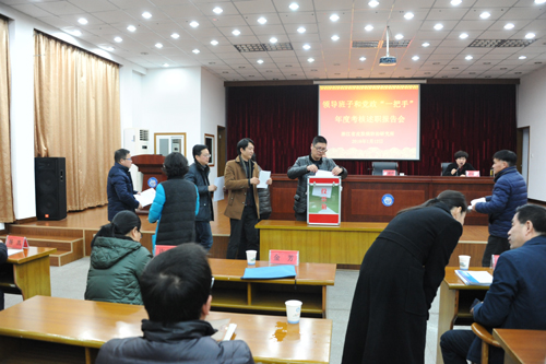 严丽英所长代表领导班子作2015年度工作报告及个人述职述廉述德述法报告,于杭跃书记作述职述廉述德述法报告。随后参会人员对我所领导班子和班子成员进行民主测评,同时,对我所党委2015年度选人用人工作开展“两评议”并进行了无记名投票。
