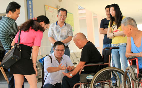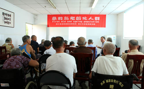 王景权主任医师贴近麻风村老年休养员的实际生活,为麻风村的麻风病人和医务人员作了一堂《老年麻风康复者摔倒的预防与急救》的专题讲座,南丁格尔获得者潘美儿等红十字会员和志愿者手把手指导麻风畸残患者开展康复技巧,传播自我救护常识,造了一个“人人会急救急救为人人”的良好氛围。