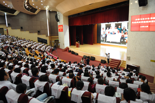 国家卫生计生委中国人口宣教中心副主任王山讲话指出,开展全国卫生计生系统先进典型事迹巡回报告,是国家卫生计生委认真贯彻落实中央《关于培育和践行社会主义核心价值观的意见》,充分发挥先进典型的示范带动作用,进一步弘扬主旋律,传播正能量的重要活动。报告团先进典型事迹质朴感人、可学可敬,他们在平凡的岗位上做出了不平凡的业绩,是践行社会主义核心价值观的生动体现,号召全国卫生计生系统开展向先进群体学习的活动,立足本职工作,学先进,见行动,比贡献,用扎实的工作向时代楷模致敬,用非凡的业绩为平凡岗位添光彩,推动卫生计生事业持续健康发展。