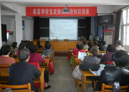 按照事先安排的课程表,在4月底、5月初,皮肤科徐新美主任讲授的是“春夏季皮肤病的防治”;在5月底、6月初,卜煜锋副所长讲授的是“仲夏季节的养胃”。两位专家倾注了满腔的热情,为老年朋友们作了精彩的讲解,使这些爷爷奶奶们不仅自己丰富了健康知识,还能给家里的孙儿们在中、高考的饮食调补上添一把力。