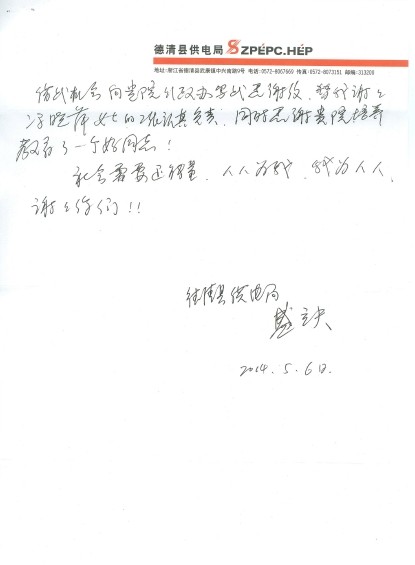 5月5日下午3时,我所挂号室职工冯晓萍在窗口拾到钱包一只,内装有较多现金以及银行卡、身份证等等。冯晓萍随即按照身份证上的姓名,从门诊挂号系统中查找失主的电话,第一时间通知了财务科,联系失主。原来失主正好在离我院很近的供电局上班,姓盛。接到电话时,失主完全没有发现自己已经丢失了钱包。确认后,盛先生又惊又喜,表示立即前来认领。第二天,盛先生特地寄来了感谢信,感谢了冯晓萍,更感谢我们单位培养教育了高素质工作人员。