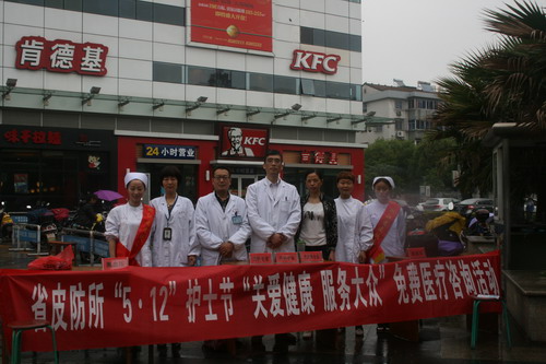 5月10日,为纪念“5.12”国际护士节的到来,由我所护理人员、皮肤科、内科、外科专家组成的医护服务队到德清正翔商业广场开展“关爱健康服务大众”免费医疗咨询活动,卜煜锋副所长带队参加。