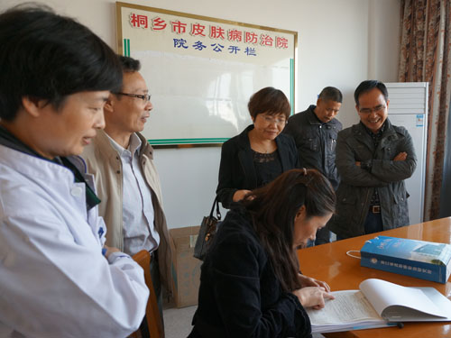 考核主要采取听汇报、查阅资料、核对病历及随访资料、查阅LEPMIS工作日志、现场检查患者等方式,并走访了桐乡市和海宁市两个现场点,重点考核我省2013年度的麻风病疫情监测相关工作、2013年度LEPMIS工作以及麻风病历史资料整理等各项工作。严良斌主任充分肯定了我省麻风病防治管理信息系统取得的成绩,尤其是我省创建的麻风病可疑症状监测系统,在早期发现病例方面所取得的成效。同时,也对我省在全国率先开展全省麻风病治愈存活者生存质量调查工作所取得的成绩给予了高度评价。在反馈现场上,严良斌主任和考核组专家们对我省LEPMIS工作提出了几条建议。