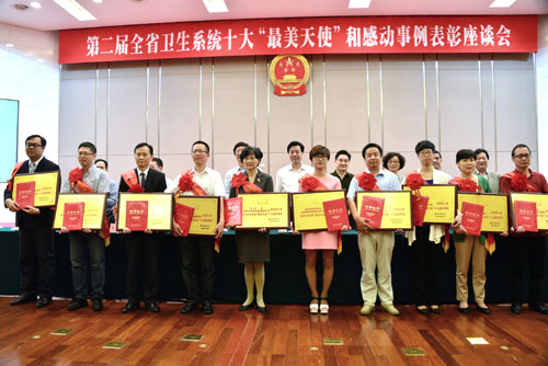10月15日,第二届全省卫生系统十大“最美天使”和感动事例表彰座谈会在省人民大会堂召开。我所上柏住院部被评为十大感动事例并受到表彰。我所党委书记于杭跃、上柏住院部青年文明号号长归婵娟参加了表彰会。