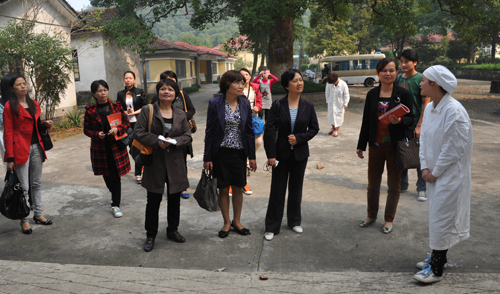 严丽英书记对考察团的到来表示了热烈的欢迎,并介绍了我所的基本情况、文化建设、基础建设以及近年来浙江省麻风病防治所取得的一些成功经验。潘美儿护士长就自己工作在深山,服务于麻风病人日常点滴与大家分享,并用5个精神做了总结:一是要有爱心相伴,真诚相待的精神,二是要有吃苦耐劳,坚持不懈的精神,三是要有认真做事,刻苦钻研的精神,四是要有虚心学习,不断前进的精神,五是有团结协作,共同进步的精神。精彩的演讲迎来了热烈的掌声。