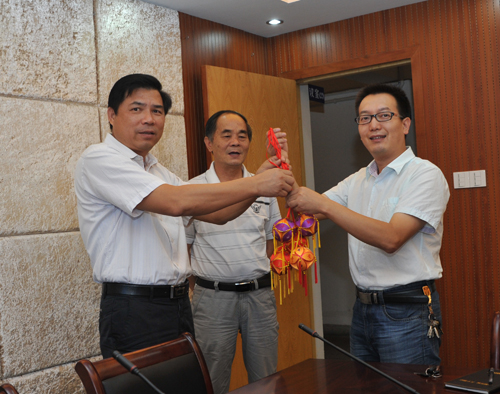 卜煜锋副所长对考察团的到来表示了热烈的欢迎,并详细介绍了我所的基本情况、文化建设、基础建设以及近年来浙江省麻风病防治所取得的一些成功经验。卢玉文副院长表示,中国疾控中心麻风病控制中心副主任张国成在全国各省份经常称赞浙江省的麻防工作和麻风村规范管理走在全国前列,此行的目的就是来浙江省学习麻风病防治和麻风康复村管理工作的先进理念和宝贵经验的。双方进行了友好而热烈的座谈与交流,为表达麻防工作者之间的深厚的感情和对麻风病患者同样无私奉献的爱,卢玉文副院长还向卜煜锋副所长献上了绣球,同时这也是双方友谊的象征。