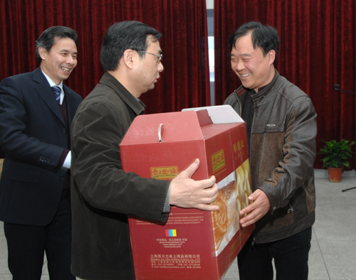 在扣人心弦的抽奖环节中,一等奖由叶真副厅长抽取,富有戏剧性和巧合的一幕发生了,他抽取的“22”号,恰恰抽到了他自己!叶厅长当即将一等奖的奖品——一床厚厚的蚕丝被捐献给上柏住院部的麻风病防治工作者。当上柏住院部喻永祥主任从叶厅长手中接过这满含情意的礼物时,在场的每一位感到的是温暖和感动,在第58届世界防治麻风病日浙江省宣传慰问活动的当天,能收到这份特殊的礼物,是对所有为麻风病防治事业作出贡献的麻防工作者的充分肯定。