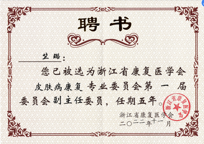 岗员竺璐当选为浙江省康复医学会皮肤病康复专委会副主任委员..