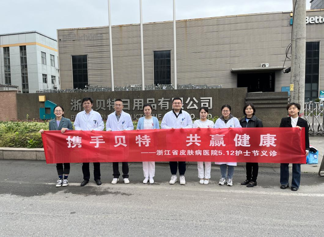 2023年4月20日上午,浙江省皮肤病医院医学美容中心岗岗员张菁和院义诊团队一起前往浙江贝特日用有限公司,参加了“携手贝特 共赢健康”5.12护士节义诊活动。