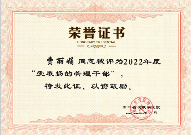 岗员费丽娟获2022年度受表扬的管理干部和优秀资产管理员