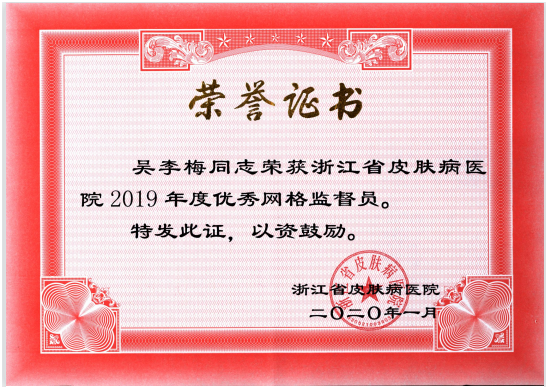 岗长吴李梅被评为2019年度优秀网格监督员