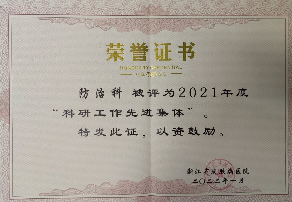 公共卫生防治岗获2021年度科研工作先进集体和文明示范科室