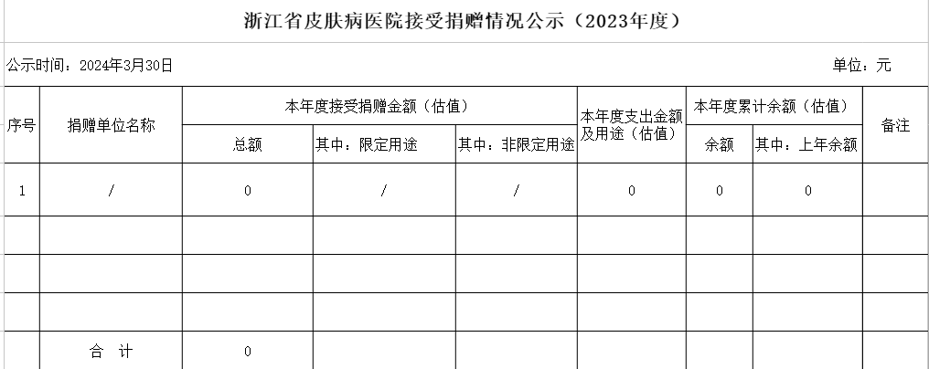 浙江省皮肤病医院接受捐赠情况公示(2023年度)