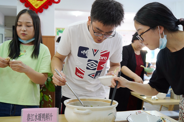 美食逐一上桌了,评委、选手、观众们也围了上来,“德清味道”饱满诱人的色泽和馨香四溢的香味让大家垂涎欲滴,评委们率先品尝打分。