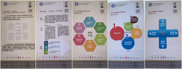 连廊主要展示了五位中央领导人嘱廉、党的十八大以来修制定的党纪党规、党风廉政建设和行风建设规定、清廉医院建设、上柏住院部医患故事、职工廉政书画作品、廉政漫画、廉政足迹等内容。