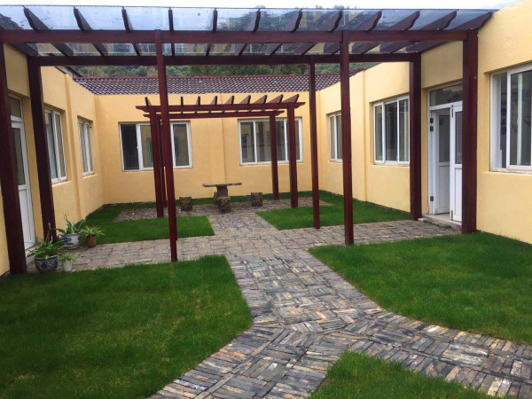 四合院以清风亭,悬挂廉政短语,种植荷花和青竹烘托廉政主题。