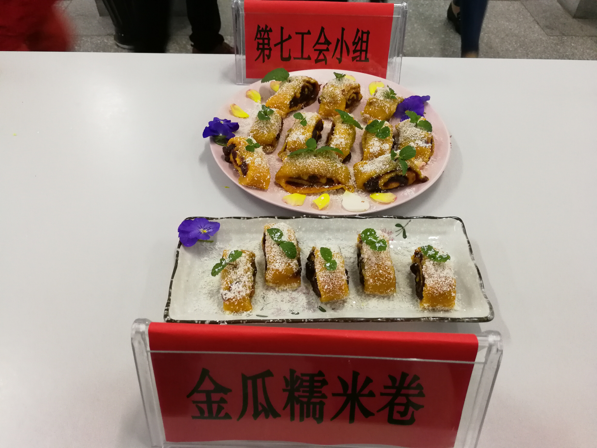 由院领导和各工会小组选派代表组成的评委团,认真品评着每道佳肴。评委和群众们对选手们的精湛厨艺赞不绝口。评委们从作品的外形、口味、色泽、营养、名字等五个方面对作品进行了综合评定,评选出了一、二、三等奖,还评选出了最受欢迎奖、最佳外形奖、最佳名称奖、最佳上镜奖、最佳美味奖等单项奖。经过激烈角逐,最终第七工会小组呈现的“金瓜糯米卷”获得一等奖。