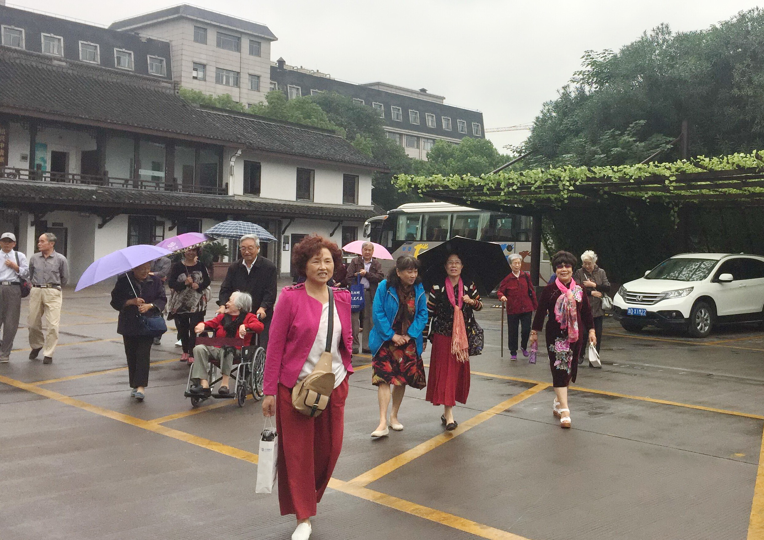 参观结束不仅已是秋雨绵绵,大家漫步在窄窄的青石板路上,欣赏着这细雨中朦胧的白墙灰瓦、古老又修葺一新的竹丝台门,感受党的十八大以来的新变化、新气象,大家不时的交流观赏心得。老同志们觉得大家虽已退休,但思想不退,将继续发挥余热,喜迎党的十九大的胜利召开。