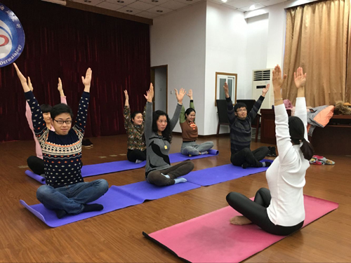 12月11日下午16点,第五工会小组在六楼多功能厅组织了瑜伽活动。此次活动的主题是“感受瑜伽运动,倡导健康生活”。